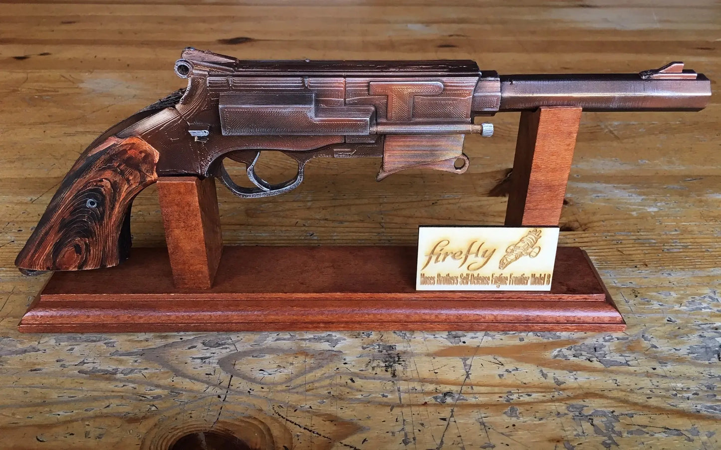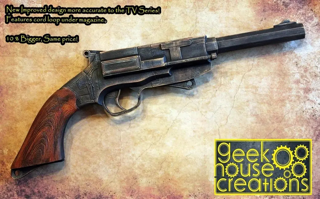 If you're a fan of the classic sci-fi show Firefly Serenity, you'll love this replica of Captain Malcolm Reynolds gun, either to complete your Malcolm Reynolds cosplay or display. This replica of Malcolm Reynold's icon gun prop makes gift for your favorite Firefly fan or a perfect display in your own Firefly Serenity Fan shrine.