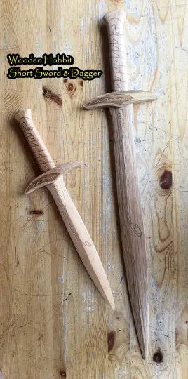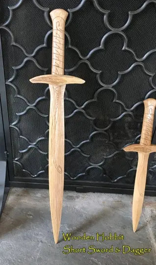 Lord of the Rings Frodo Toy Wooden sword, perfect for display for kids room. Featuring laser engraved detailing and scroll work on the blade, guard, and handle this wooden practice sword is great as a display piece, prop, or light sparring sword.