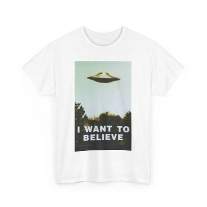 I Want To Believe X-Files inspired t-shirt perfect for fans of the show or UFO enthusiasts. Gives off a nostalgic vibe and is a great gift for loved ones. Ideal for casual wear and fans of Retro 90's style.