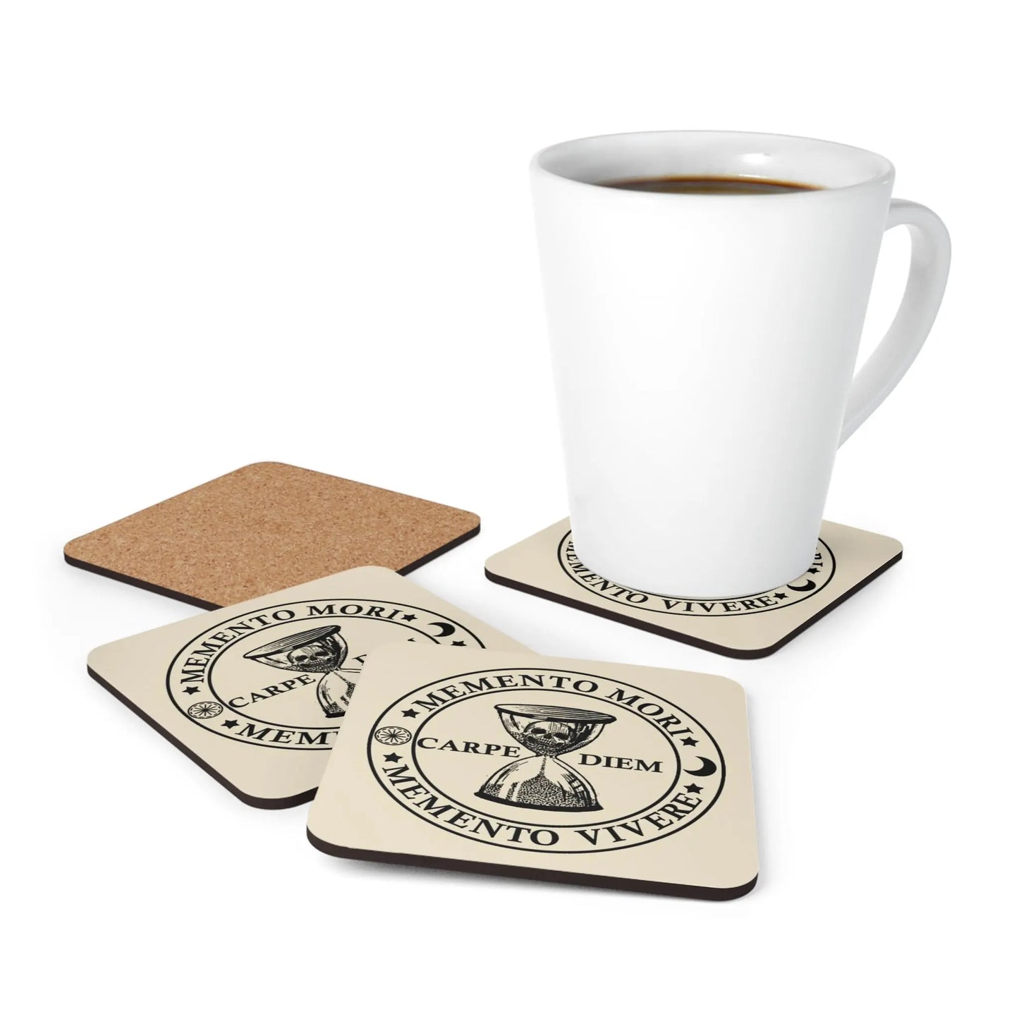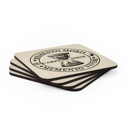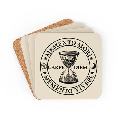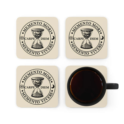 This Memento Mori Corkwood Coaster Set is perfect for spooky decor. Each coaster features a unique design inspired by the Gothic aesthetic, with the Memento Mori design and Memento Viviere on full display. Great for Halloween or goth interiors, these corkwood coasters bring an eerily chic look to your home.