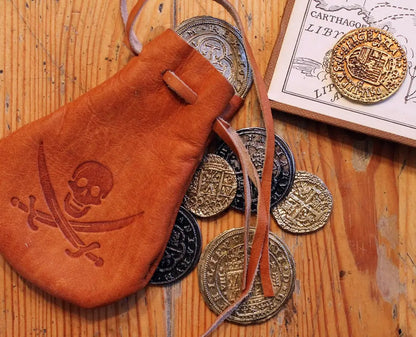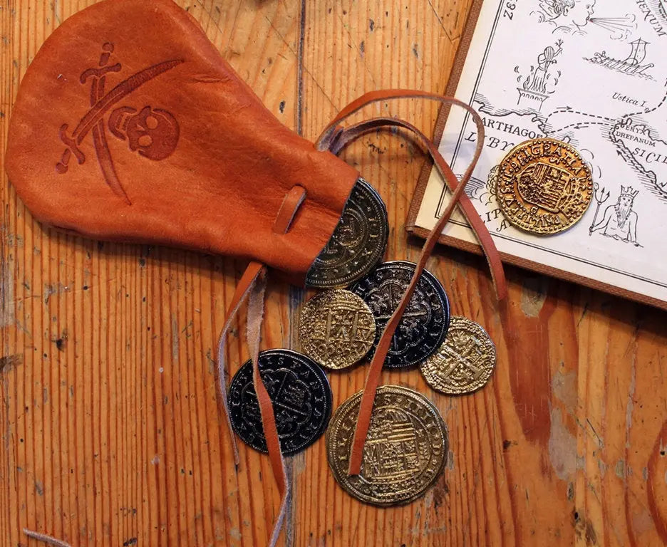 Pirate Coins with small leather "purse", great for Medieval Fantasy Cosplay, Pirate Booty