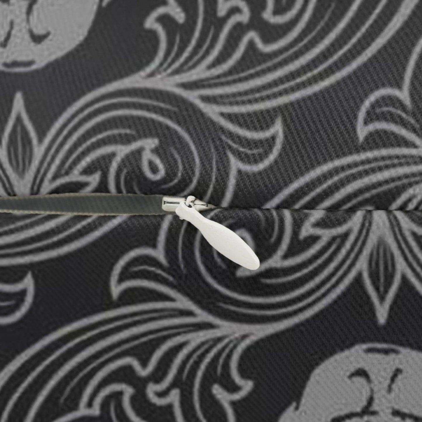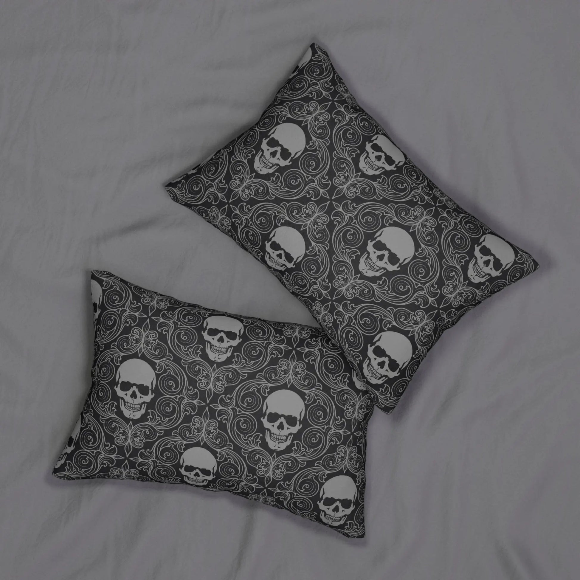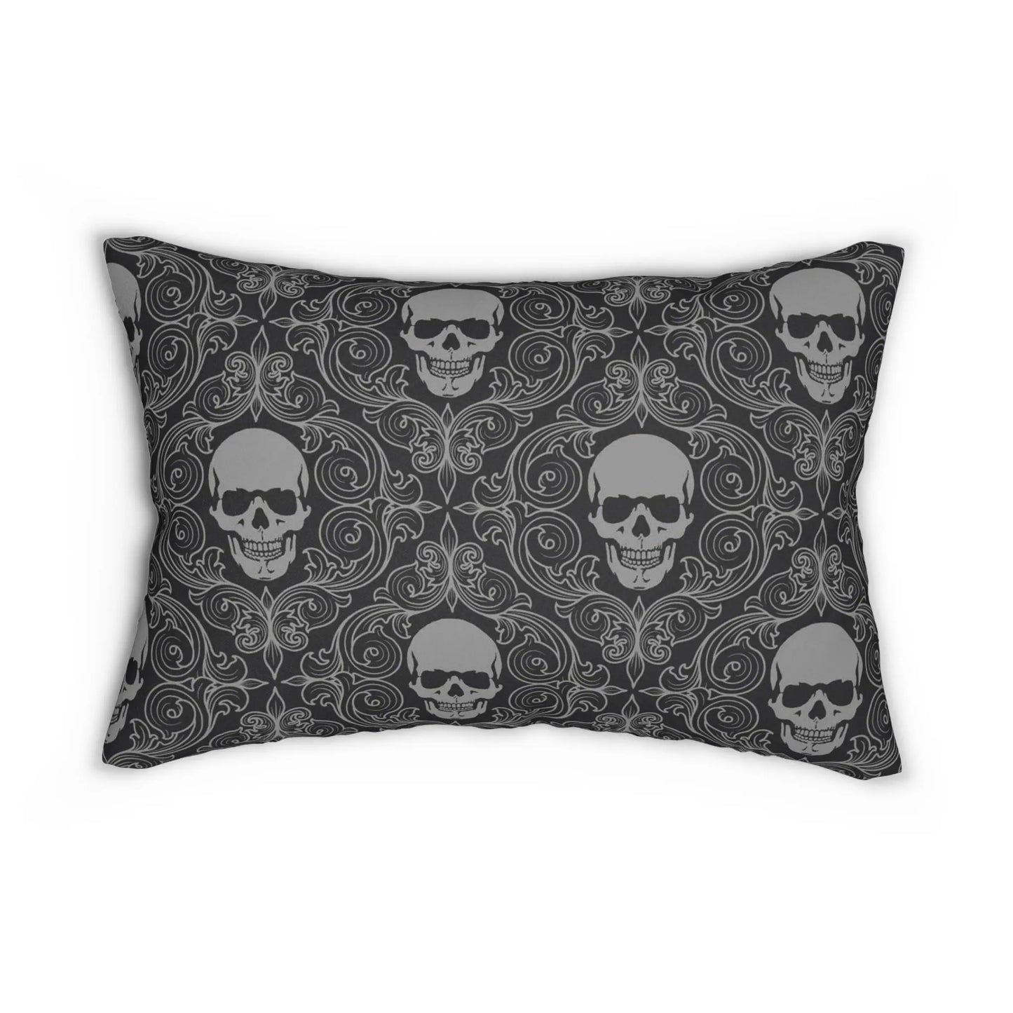 Skulls Lumbar Pillow Expertly crafted with striking skull designs, this lumbar pillow is an exceptional addition to any gothic decor. Embracing the Memento Mori theme, it's ideal for enhancing your Halloween festivities or elevating your year-round goth aesthetic.
